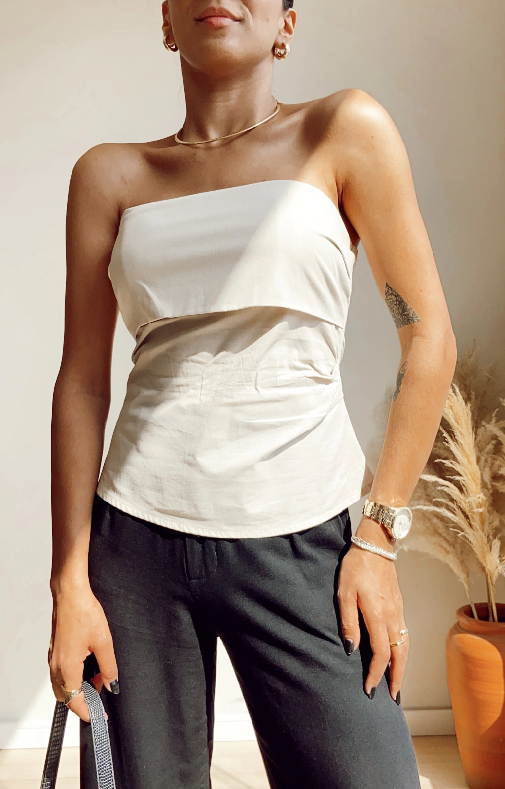 Sabe aquela peça perfeita?! Ela existe! Nossa blusa Chloe é a peça certa para essa próxima estação. Confeccionada no tecido tricoline 100% algodão pré lavada, ela possui barbatana no busto para estruturar, forrada no busto, zíper atrás e elástico na parte de cima de trás. Ela é aposta certa para o verão que está evidenciando muito os ombros. Fresquinha e chic, ela compõem vários estilos. Amamos!