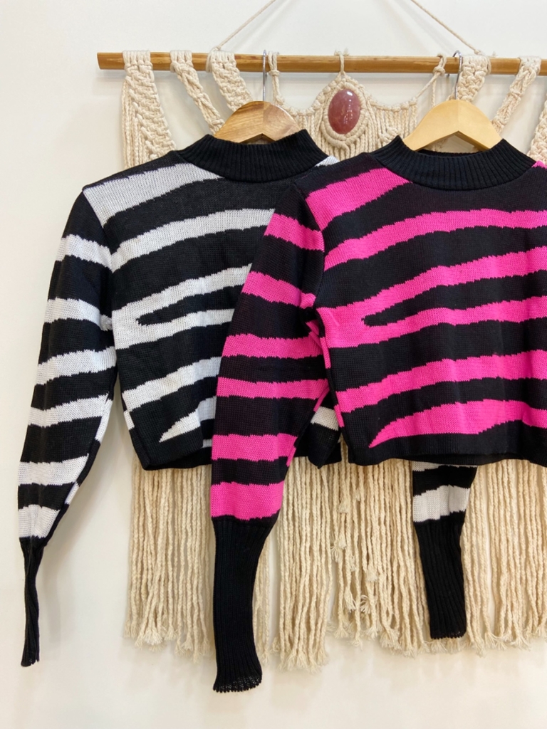 Nosso tricô Flávia possui a modelagem Cropped, punhos na manga e gola. Confeccionado no modal, com a estampa clássica animal print e qualidade excelente. Super estiloso e atemporal.